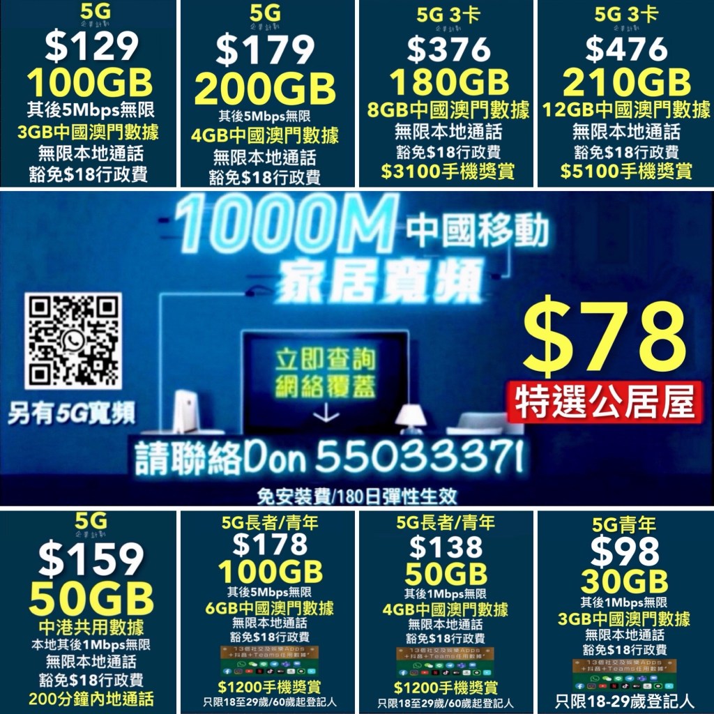 中國移動香港超強5G網絡,全港市區戶外覆蓋廣,其中中西區、灣仔及銅鑼灣覆蓋達99%以上,葵青區覆蓋接近99%,觀塘區覆蓋超過99%,油尖旺區覆蓋超過99%,荃灣區覆蓋亦接近99%。 中國移動香港旗下所有門市及主流基礎設施及地標商場均有5G覆蓋,包括︰香港國際機場、港鐵站;香港會議展覽中心、數碼港、科學園、海港城、奧海城、中環置地廣場、及屯門市廣場等。 現更伸延至戶外地區,包括多個行山露營熱點如大欖涌、伯公坳以及大棠等,讓你戶內戶外亦可隨時享受優質網絡。